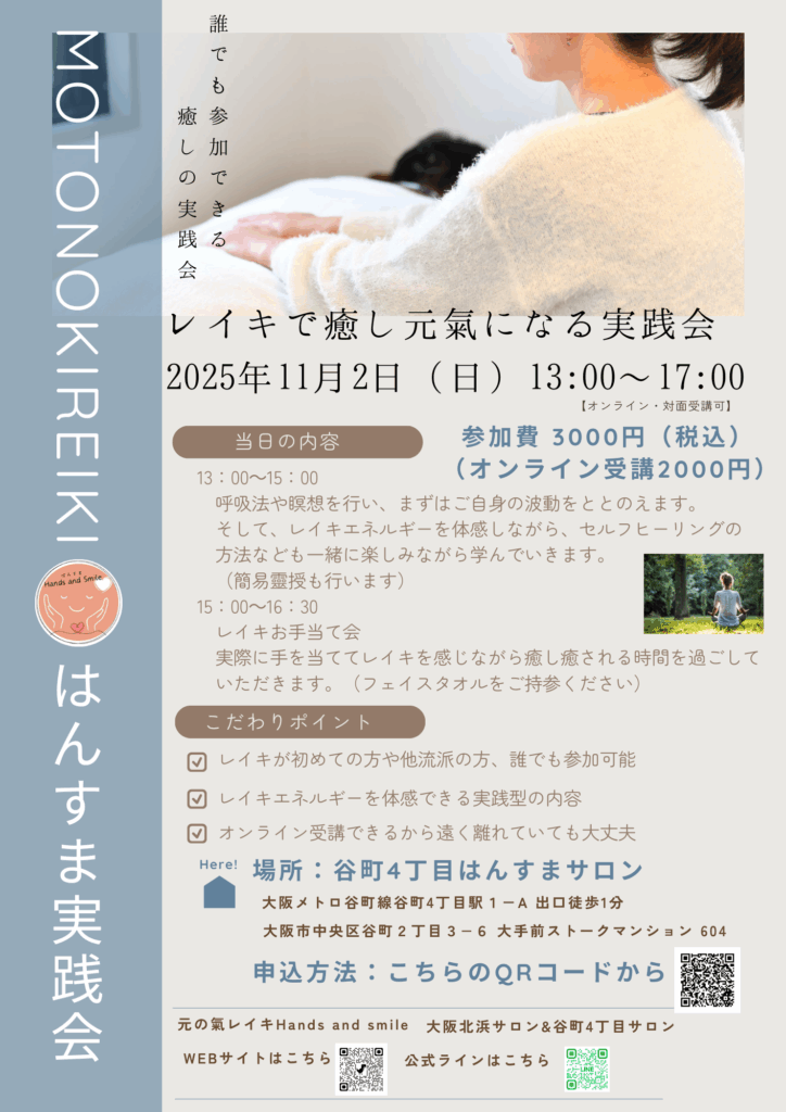 11月【誰でも参加できる】レイキを体験できる実践会を開催中